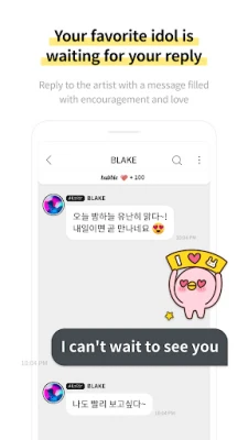 Váš idol netrpělivě očekává vaši odpověď. Vyjádřete svou podporu, lásku a povzbuzení ve zprávách, které si s nimi vyměňujete, a staňte se aktivní součástí jejich příběhu. Sledujte také speciální výročí a počítejte dny, které jste společně s vaším idolem strávili – každý den je jedinečný. Navíc nezáleží na tom, jakým jazykem mluvíte; bubble vám umožňuje číst zprávy idola a posílat odpovědi ve vašem rodném jazyce, což zajišťuje bezbariérovou komunikaci. Připojte se k bubble od Dear U a začněte psát svou vlastní kapitolu v příběhu s vaším idolem ještě dnes.