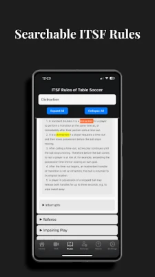 Objevte novou záložku "Pravidla", která vám umožní bleskově vyhledávat oficiální předpisy ITSF podle klíčových slov jako "Jar", "Reset" nebo "Time Out". Pravidla jsou přehledně seskupena do rozbalitelných a sbalitelných sekcí pro snadnou orientaci. Navíc si nyní můžete přizpůsobit rozložení uživatelského rozhraní v sekci "Nastavení UI konfigurace". Přesuňte tlačítka pro 10 a 15 sekundové časovače tak, aby dokonale odpovídaly vašemu stylu držení telefonu a velikosti palce. Eric Dunn neustále pracuje na vylepšování iRefFoos a vítá vaši zpětnou vazbu k dalšímu rozvoji této jedinečné aplikace.