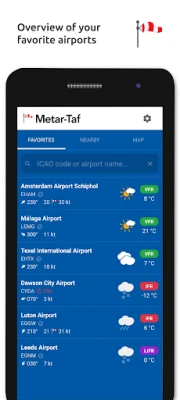 Získejte vizuální a srozumitelné informace o počasí METAR a TAF pro všechna letiště na světě. Aplikace poskytuje stručný, ale komplexní přehled všeho, co potřebujete vědět o aktuálním leteckém počasí.