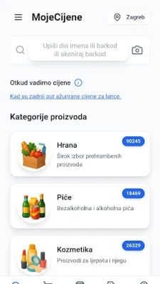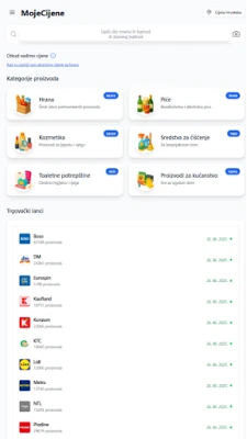 MojeCijene vám pomáhá snadno porovnávat ceny produktů v supermarketech. Najděte nejlepší nabídky ve vašem okolí, uspořádané podle vzdálenosti od vaší adresy. Ušetřete čas a peníze s chytrou aplikací MojeCijene.