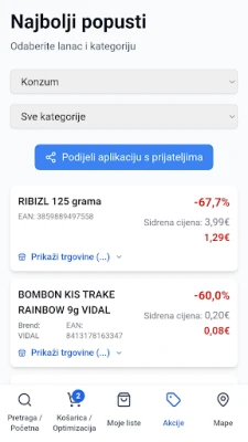 Nezáleží na tom, kde obvykle nakupujete. Podporujeme širokou škálu obchodních řetězců, včetně Konzum, Lidl, Plodine, Kaufland, Spar, Metro, Studenac, Ribola, NTL a mnoha dalších. Naše databáze se neustále rozšiřuje a aktualizuje *každý den*, což vám zaručuje přístup k nejaktuálnějším informacím o slevách a cenách. Přestaňte se obávat, že propásnete nejlepší nabídku. S touto aplikací máte všechny akce a nejvýhodnější ceny vždy na dosah ruky, připravené k inteligentnímu nákupnímu rozhodnutí. Optimalizujte své výdaje a užijte si chytřejší nákupy s kompletním přehledem.