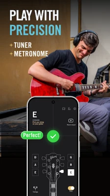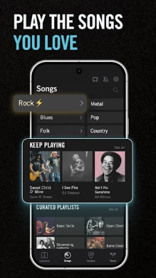 Ponořte se do strukturovaných lekcí kytary, které vás systematicky provedou základy i pokročilejšími technikami. Díky interaktivním videím s okamžitou zpětnou vazbou si osvojíte držení akordů, rytmické vzorce a potřebné dovednosti. Následně si procvičte své umění na ikonických písních od legend, jako jsou Eric Clapton, B.B. King, Santana, Aerosmith nebo The Beatles, využívajíc přesné tabulatury a akordy přizpůsobené vaší úrovni. Integrovaná ladička zajistí dokonalou intonaci a metronom zdokonalí váš rytmus a načasování.