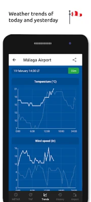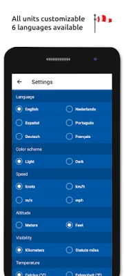 Prohlédněte si bohatou historii počasí s grafy zobrazujícími trendy teploty, dohlednosti, rychlosti větru a QNH za dnešek i včerejšek, nebo se ponořte do podrobnějšího archivu METAR zpráv. K dispozici jsou také komplexní informace o letištích, jako jsou směry drah, nadmořská výška a zeměpisná poloha. V případě, že letiště nevydává vlastní zprávy METAR, aplikace inteligentně využije data z nejbližší dostupné stanice. Přizpůsobte si jednotky rychlosti (uzly, km/h, m/s, mph), nadmořské výšky (metry/stopy), dohlednosti (kilometry/míle), teploty (Celsia/Fahrenheita) a tlaku vzduchu (hektopascaly, palce Hg) podle svých preferencí. Všechny časy jsou automaticky převedeny na lokální čas pro každé letiště a data METAR, TAF a letišť jsou ukládána pro offline použití. Tato aplikace je dostupná v šesti jazycích – angličtině, holandštině, španělštině, portugalštině, němčině a francouzštině – což zajišťuje globální přístupnost a snadné použití po celém světě.